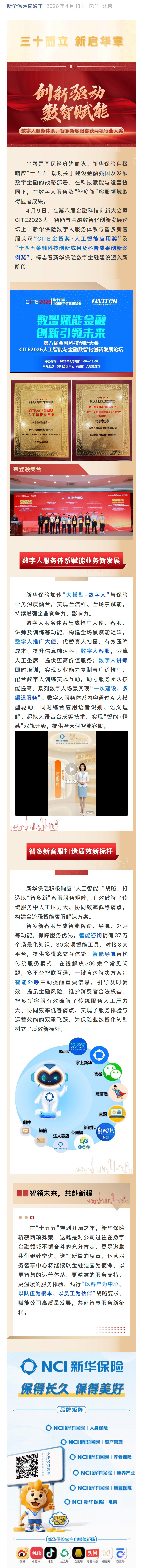 新华保险数字人服务体系、智多新客服喜获两项行业大奖
