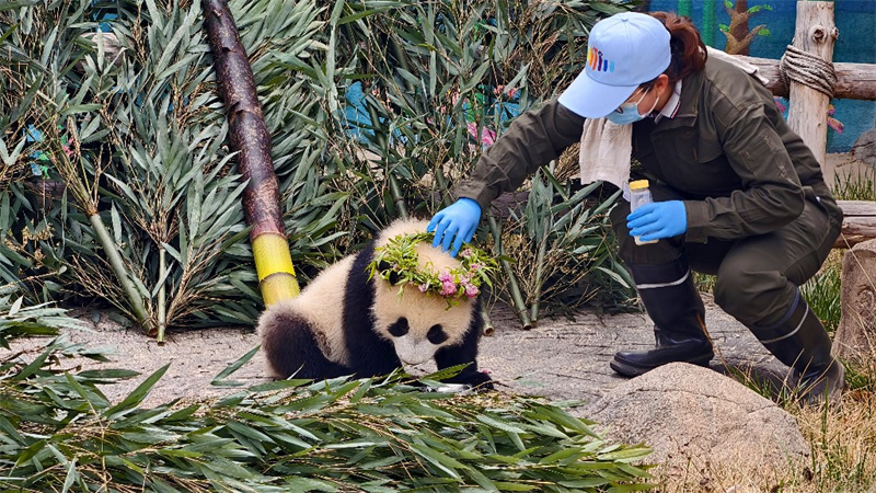“曼兰崽”于2025年9月19日在兰州野生动物园降生,为大熊猫“曼兰”与“鸿禧”的后代。出生时体重仅100余克,通体粉嫩。经过半年多的科学培育与悉心照料,如今已褪去稚嫩,标志性的黑眼圈与黑色“马甲”日益清晰,身形圆润,步态呆萌,性格活泼好动。为兼顾幼崽健康成长与游客观赏体验,兰州野生动物园提前规划,打造独立展区,展区内模拟自然栖息环境,既满足幼崽玩耍休憩需求,也实现游客无遮挡近距离观赏。