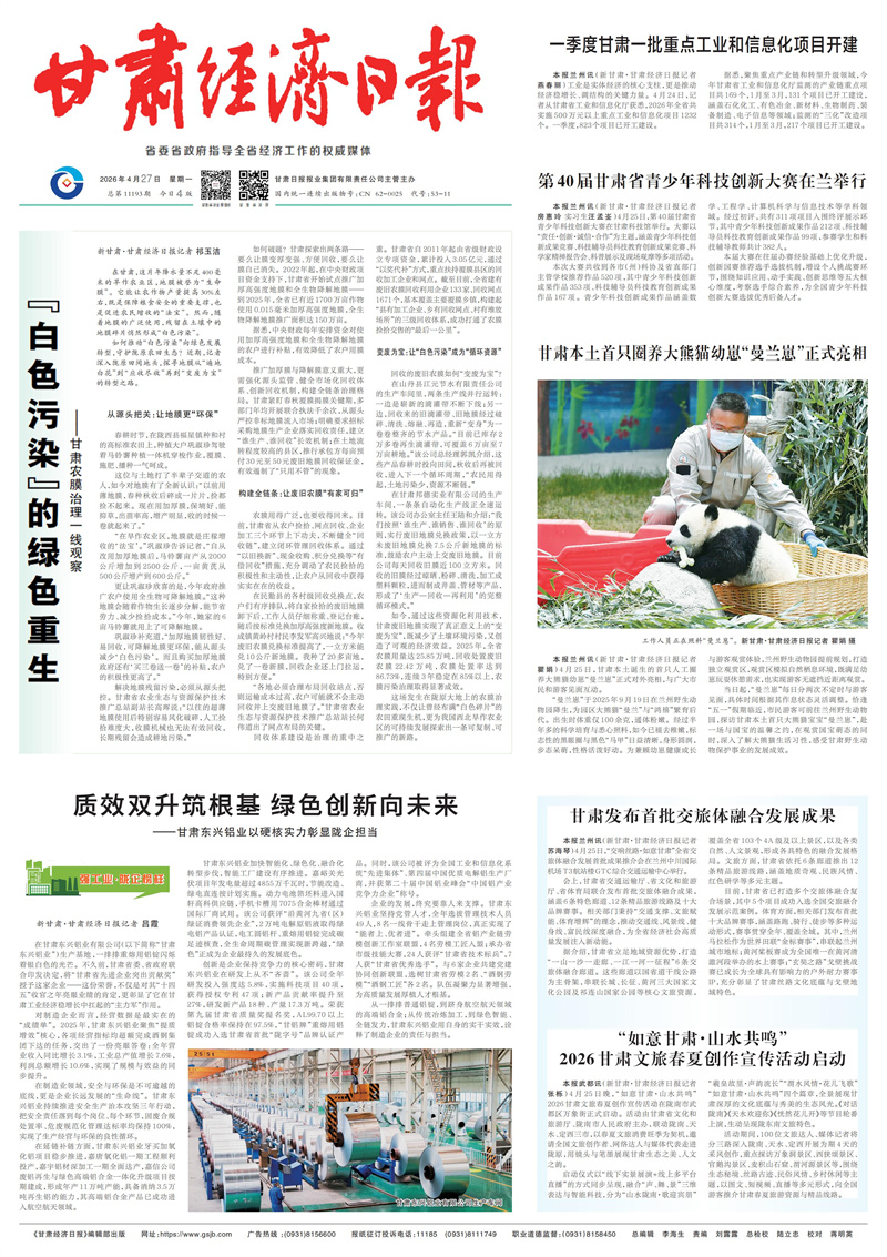 新甘肃·甘肃经济日报记者 祁玉洁